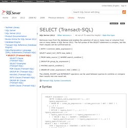 T-SQL oferuje szereg komend sterujących przepływem wykonywania skryptów, polecenia warunkowe, obsługi błędów, pętle. Welcome to the T - SQL Tutorial. A common task when using Transact- SQL ( T - SQL ) is to copy information from one table into another, possibly changing the data or its structure in the same operation. Zapytania w SQL do bazy danych to nie tylko proste porównania klucza lub innych kolumn. Skorzystanie z tej metody znacząco ułatwia pobranie ściśle określonych danych, a przede wszystkim skraca kod naszego programu gdzie.